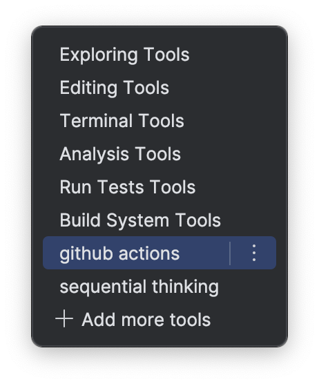 . To see the list of tools, open the dropdown menu with the connected server’s name.